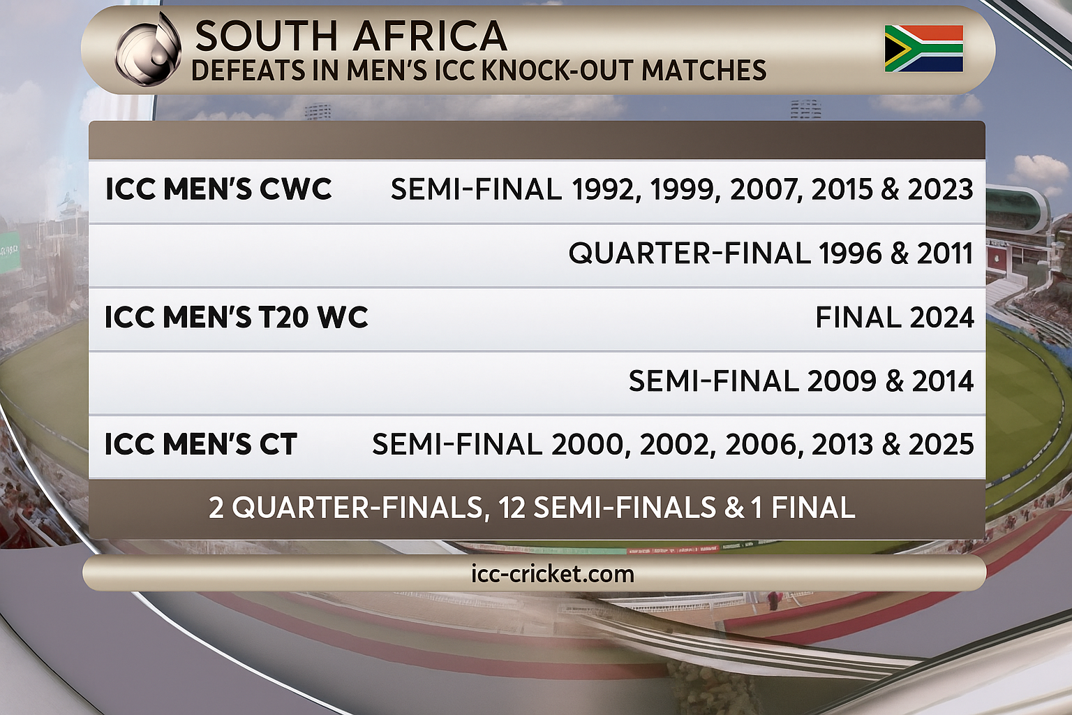 As we look on the Photo above, we see that South Africa has played 2 Quarter Finals, 12 Semi Finals and 1 Final Match before they could win, their 1st ever World Cup Final, when they won the World Test Championship {WTC} on 14 June 2025, by beating Australia by 5 wickets, at the Lords Cricket Stadium in England.